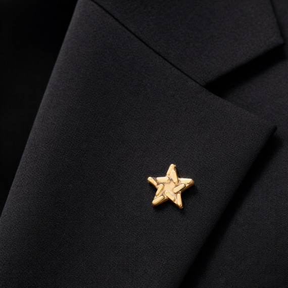 Huy hiệu sử dụng biểu tượng ngôi sao năm cánh – hình ảnh cốt lõi trong nhận diện thương hiệu MB. Ngôi sao được tạo hình khối chắc chắn, các cạnh bo tinh gọn, tỷ lệ cân đối, tạo cảm giác vững vàng và tin cậy khi cài trên ve áo vest, áo sơ mi hoặc trang phục lễ nghi.